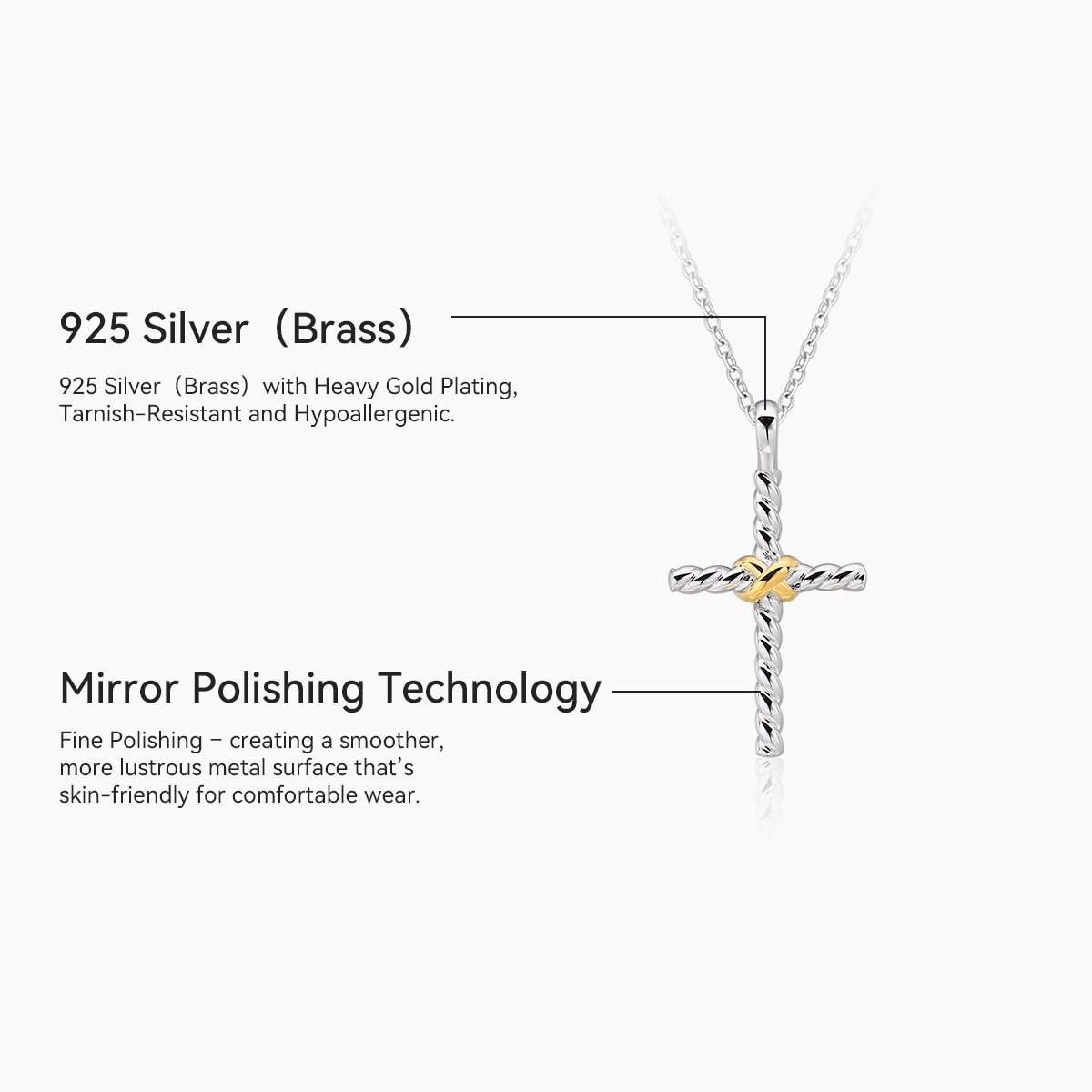 Copper cross platinum 18K gold two-tone electroplated men’s and women’s unisex necklace pendant