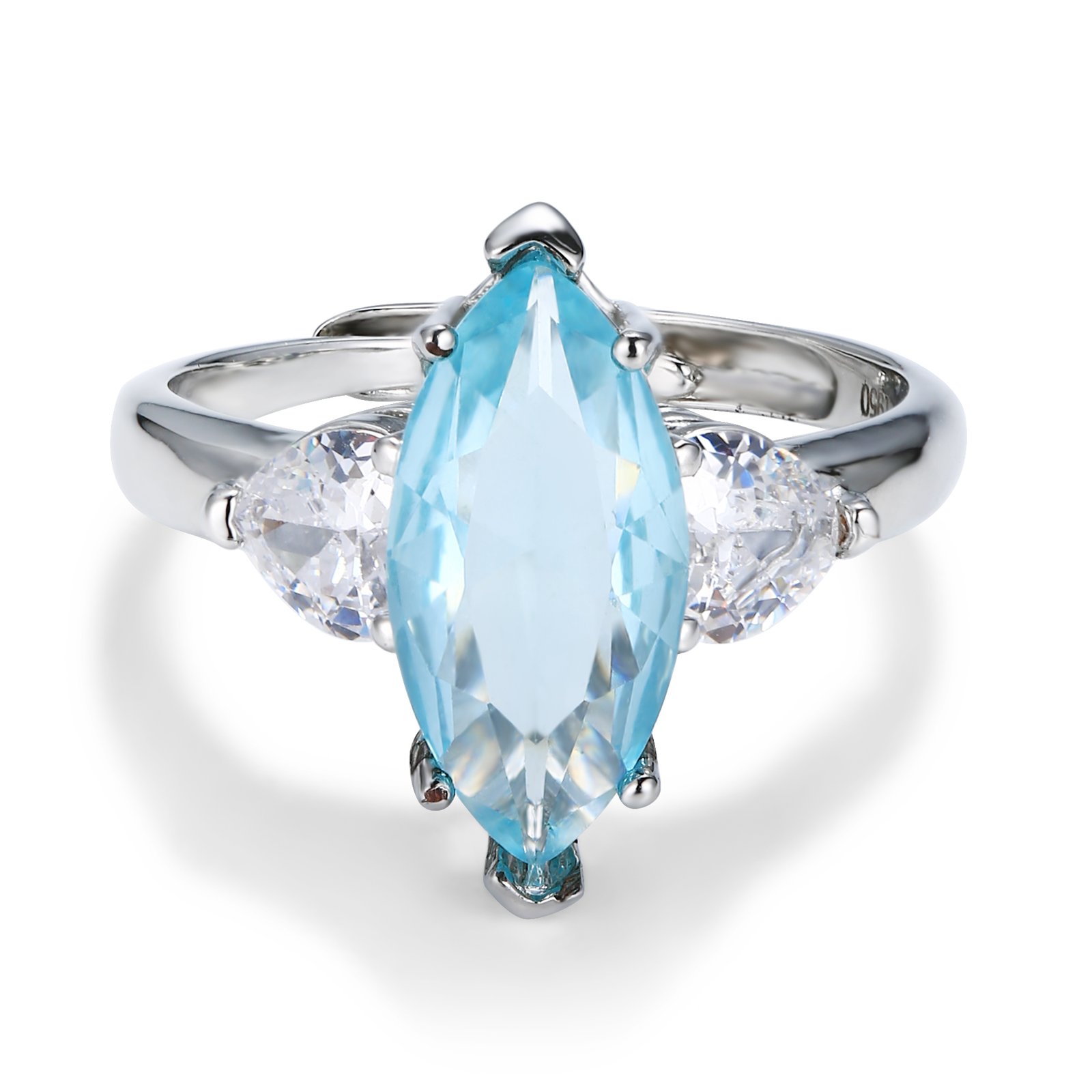 Rhodium-Plated Copper Aquamarine Ring for Women